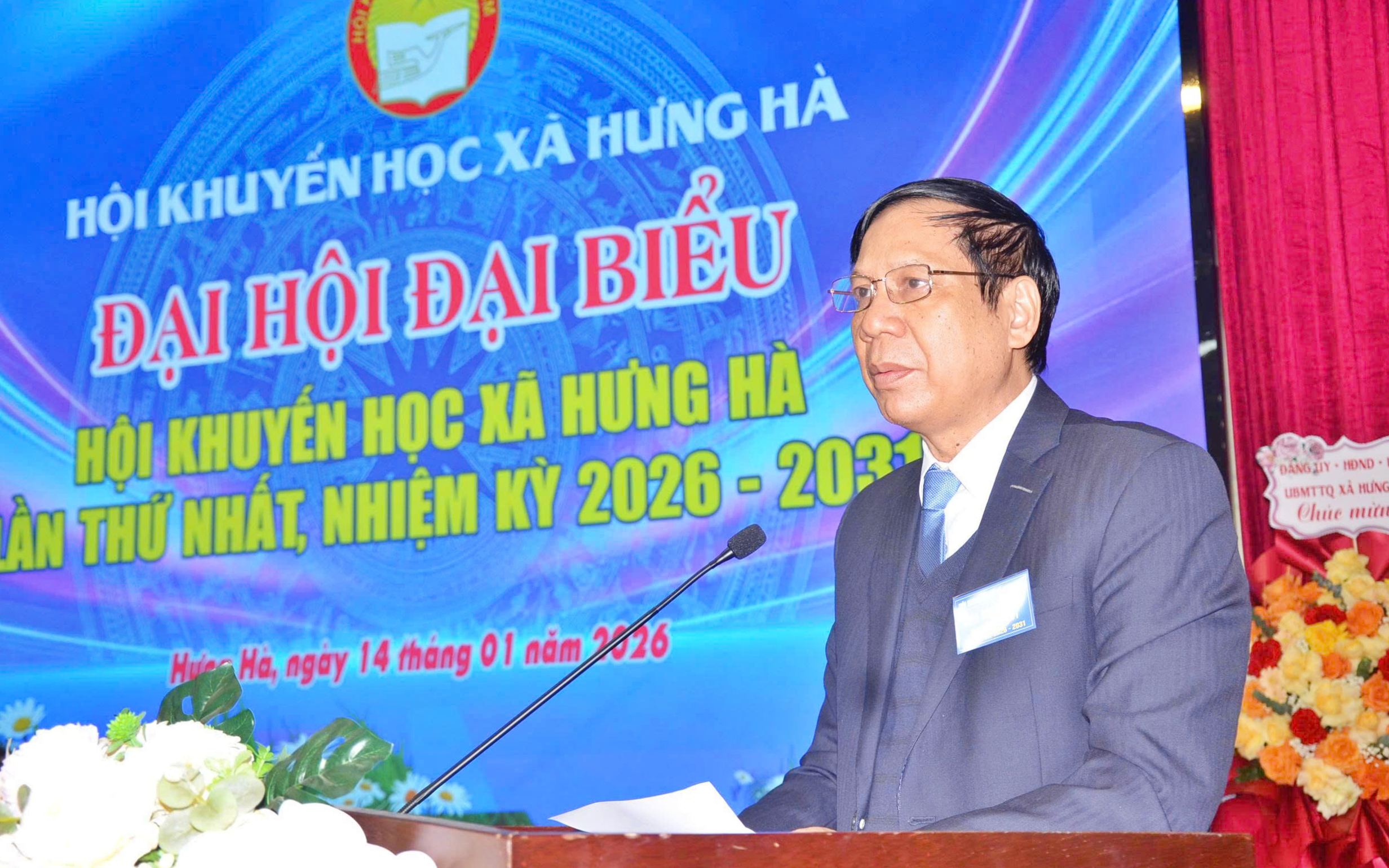 Phát biểu tại Đại hội, Chủ tịch Hội Khuyến học tỉnh Hưng Yên ghi nhận, biểu dương những nỗ lực và kết quả mà Hội Khuyến học xã Hưng Hà đã đạt được. Đồng chí khẳng định: Hội Khuyến học Việt Nam là tổ chức được Đảng và Nhà nước giao nhiệm vụ lấy khuyến học, khuyến tài làm tôn chỉ; coi xây dựng xã hội học tập, thúc đẩy học tập suốt đời là nhiệm vụ trọng tâm xuyên suốt.